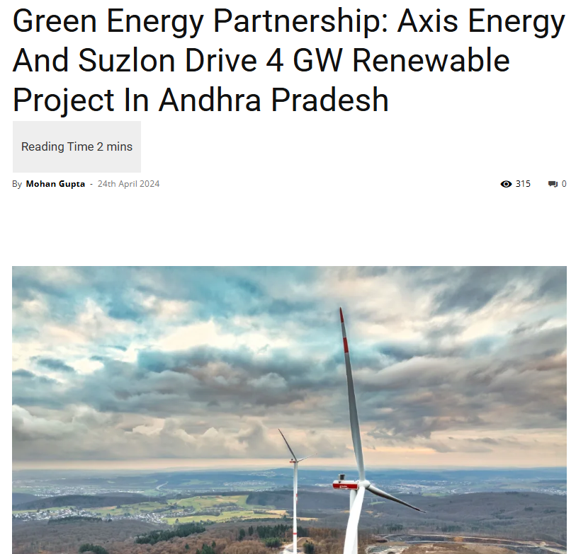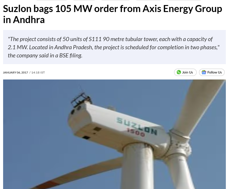 We have demonstrated capability as an EPC player and Integrated Power Producer, by way of developing and commissioning 1024 MW of wind power projects in Andhra Pradesh, of which 210 MW projects were developed under two SPVs. We have an active MoU with GoAP to install 5000 MW of wind power over the next few years